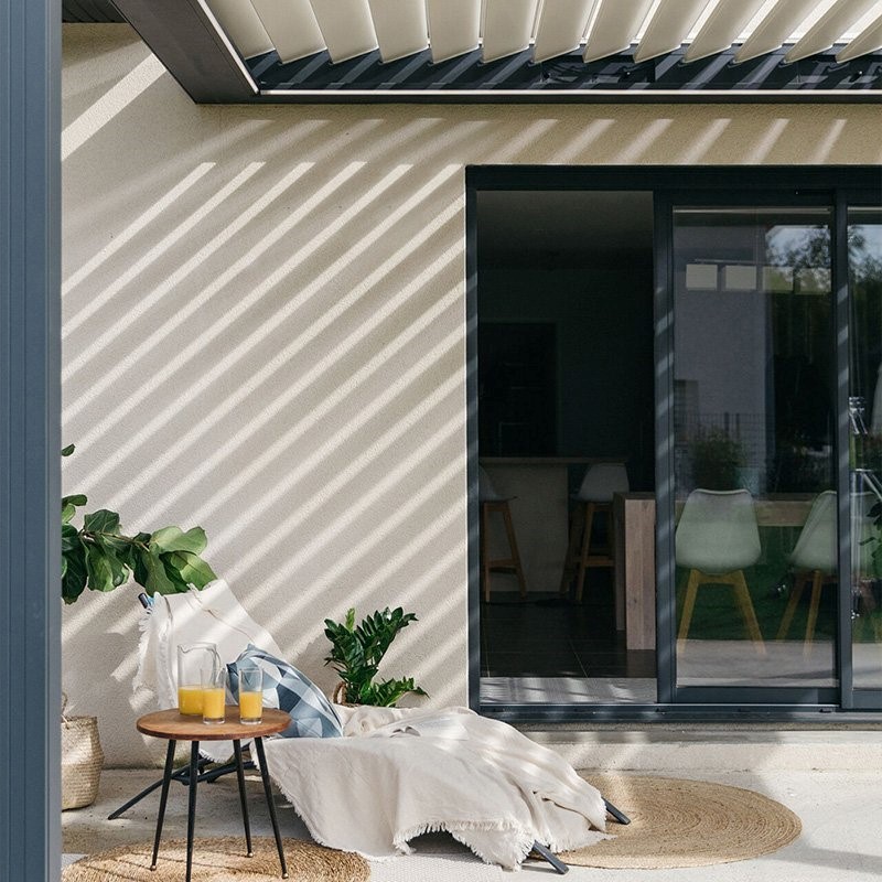 12.09.2025 Connected Solutions by SOMFY HOW TO CAPITALIZE ON ANY MODEL OF TERRACE ATTACHED TO THE HOUSE: SOME IDEAS AND TOP PRODUCTS Do you want to turn the veranda into a real extension of your home, as chic as it is practical? Here are the recommendations of Somfy specialists for arranging a modern terrace next to the house! A covered and well-appointed terrace adds value to any home, whether it's a spacious veranda or a chic small balcony. Such an additional space makes the transition between the outside and the inside of the house and is ideal as a relaxation or socializing area for those in the house and guests alike. Fortunately, these models of covered terraces glued to the house are relatively easy to maintain and upgrade, if you feel the need to make a change of style. A durable roof, a shading system equipped with smart sensors and a few pieces of furniture chosen on the eyebrow are enough to transform any type of veranda into one that looks like something out of architecture magazines. If you also have such a project in progress, read on to find out what are the most popular design ideas and trends at the moment. And if you want to enjoy an automated terrace at the highest standards, Somfy experts will help you take things to the next level. Basic principles for arranging any outdoor terrace A defining aspect for any terrace is its brightness. It should be as airy as possible, allow you to move freely and give you a wide and unobstructed view of the landscape in front of you. At the same time, a shading system for the terrace is essential, if you want to make the most of the available space, regardless of the weather and climatic conditions. Just like the shade, furniture should be chosen according to the size, shape and positioning of your terrace. Opt for practical, possibly multifunctional items, such as a set of armchairs with removable covers, made of fabrics treated against UV rays, and a sturdy table. Or, why not, a hammock or a spacious swing and a compact storage option, for children's toys and sports, team games. In addition, a few asymmetrical planters with plants in vibrant colors, strategically arranged, will help you delimit and liven up this space even more. For a unitary look, keep in mind that the style of the terrace should be complementary to the design of the house, both in terms of materials and the chosen color palette. For example, a wooden cottage arranged in warm tones would suit a terrace built of timber, decorated with rustic elements, in similar shades. However, contrasts are also welcome and can create a spectacular effect, as long as they are used sparingly, rather as decorative accents. Effective strategies for arranging models of covered terraces, close to the house Unlike a gazebo or an open terrace, located anywhere in the perimeter of the courtyard, a terrace attached to the house is better insulated and has walls. However, to maintain the connection with the outside, at least one side of the veranda or balcony should remain open or be closed with transparent, adjustable and easy-to-handle options, throughout the day and from one season to the next. The installation of sliding walls or large windows - provided with motorized blinds and blinds, to measure - would be just a few ideas for such modern terraces attached to the house. Also, verandas are usually provided with a roof. But if in the past they had a fixed roof, similar to that of the house, now many models of modern terraces attached to the house are protected by pergolas or retractable awnings. Such smart roofs and other motorized solutions for the terrace and balcony can be found at Somfy Romania's partners. Obtained through state-of-the-art technology and easy to install, they are ideal for obtaining the desired relaxation space in record time. In terms of design, it all depends on the purpose you want this additional, extremely versatile room to have. Do you want to use it as a summer kitchen, as an area for barbecues and dining, when the weather is pleasant, or do you prefer to have more room for parties and cocktails enjoyed with friends? Or maybe you'd like to turn it into a greenhouse full of lush greenery or convert it into a garage for your car or bikes? Only after you clarify this aspect, it will be much easier for you to make decisions in terms of design and furniture. Creative ideas for small terraces. How to maximize balcony space If you live in a block of flats, and the balcony is the only "terrace" next to the house you have, even this limited perimeter can become an oasis of tranquility. It's all about showing a little creativity in terms of design, because the details make all the difference. Hanging ornamental plants add fragrance and color even to a gray, concrete balcony. They create the impression of a more generous and very well-kept space, without requiring a major investment of effort and time. Also, if they are positioned outside the balcony and all around, the hanging plants become a natural curtain, which still allows light to pass through. And if you want to take things even further, you can purchase a "living" wall made of moss and lichens, which will transport you to the middle of nature, in the blink of an eye. Otherwise, rely on a simple arrangement, made of small decorative items, such as a pair of chic terrace chairs and a coffee table with elegant lines. As for lighting, choose wall lamps, which spread a soft light and do not clutter the floor. And if you want to listen to music in the background or watch a movie in the evening, opt for smart devices, interconnected through a central control unit, such as the TaHoma Switch® from Somfy. Thus, you will no longer have to deal with various unnecessary cables, but you will be able to operate each type of equipment through voice commands or scenarios predetermined by you. Last but not least, it is worth investing in a set of blinds, curtains or curtains made of ultra-resistant materials, ideal for the ter