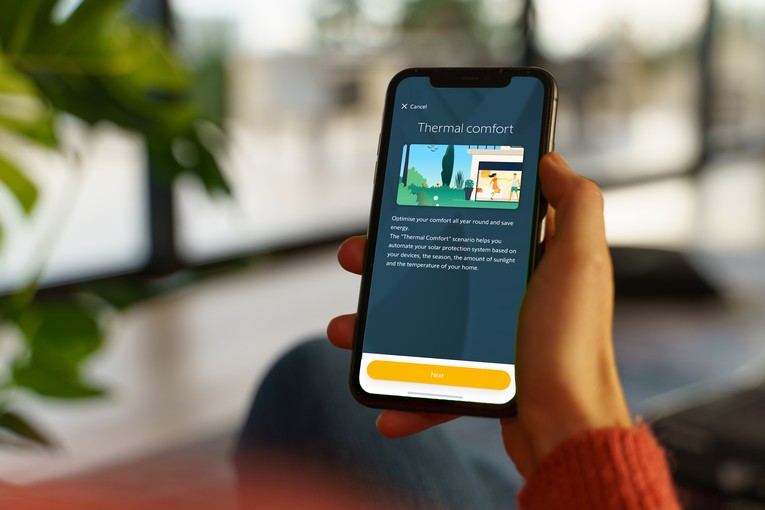 The most efficient way to do something about this is to make smarter use of that free heat source: the sun in combination with opening and closing your window coverings (roller shutters, external venetian blinds, interior blinds…) The "Thermal Comfort" pre-set scene in the TaHoma app gives you the opportunity to optimise your well-being and energy efficiency year-round by automating your window coverings according to your devices, the season and the time of day. They automatically adjust to the right position, at the right moment, even away from home.